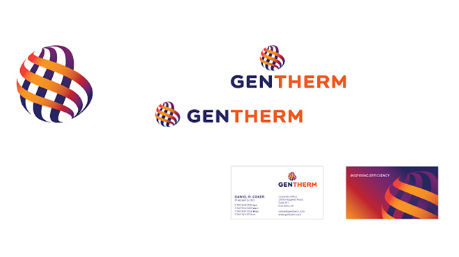 Logo exploration, part of the corporate identity development process for the new Gentherm brand (a merger of W.E.T. with Amerigon), specializing in automotive thermal technologies. Inspired by coils, the shape of the logo/mark and it’s colors represent dynamic, the exchange of heat and cold and scientific precision.