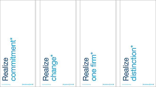 Event branding for international PriceWaterhouseCoopers leadership management seminar in Texas, emphasizing the launch of their new managing principles.