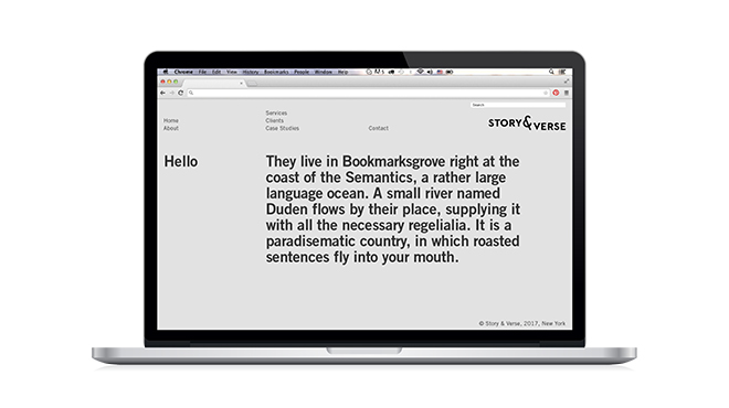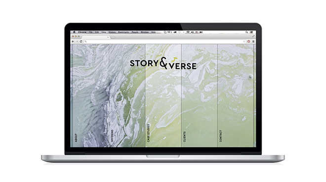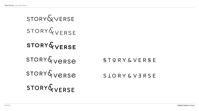 Logo design for brand strategy and innovation agency Story & Verse. A word mark: Simple, clean, with a little twist, emphasizing how Story & Verse is helping brands to disrupt their markets (slash) and grow (&).